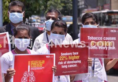 Photo Caption : Volunteers participated in awareness campaign on the World No Tobacco Day at Brigade Road Junction, organised by HCG, in Bengaluru on Friday 31st May 2019