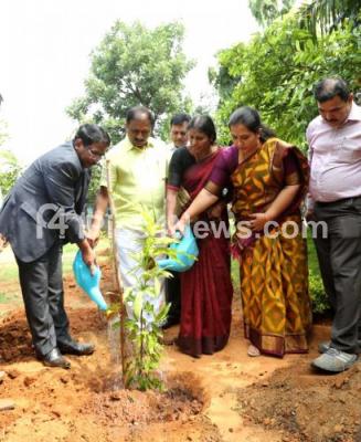 Photo Caption : Mayor Gangambike Mallikarjun with Deputy Mayor Bhadregowda, BBMP Commissioner Mannjunath Prasad planting sappling at BBMP premises on the occasion of "World Environment Day" , in Bengaluru on Wednesday 5th June 2019