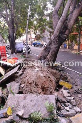 Photo Caption : Tree uprooted at Hanumanth Nagar due to last night heavy rainfall, in Bengaluru on Friday 7th June 2019