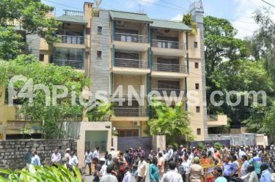 Photo Caption : Fans gathered at the residence of Jnanpeeth awardee Girish Karnad, who passed away today, he was 81, in Bengaluru on Monday 10th June 2019