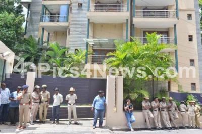 Photo Caption : Police security at the residence of Jnanpeeth awardee Girish Karnad, who passed away today, he was 81, in Bengaluru on Monday 10th June 2019