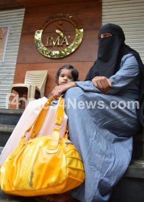 Photo Caption : An investor with her daughter seen sitting outside the IMA office at Lady Curzon Road, Shivaji Nagar, hundreds of people staged a protest against Mansoor Khan, Managing Director IMA, in Bengaluru on Tuesday 11th June 2019