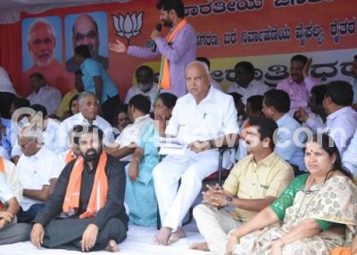 Event Description : Karnataka state BJP leaders led by BJP State President BS Yeddyurappa staged a protest against the state government in the Jindal Land deal issue at Anand Rao Circle, in Bengaluru on Saturday 15th June 2019