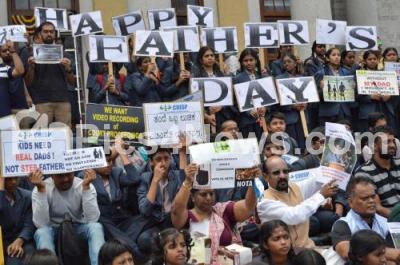 Members of CRISP with school students participating in International Fathers Day rally at Town Hall, in Bengaluru on Saturday 15th June 2019