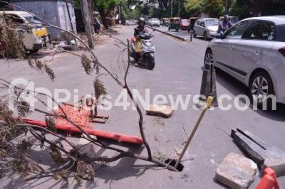 Photo Caption : Hosakere Halli main road has caved in and has been causing problems to motorists, in Bengaluru on Tuesday 18th June 2019