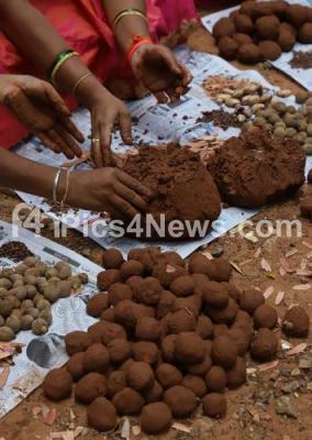 Photo Caption : Members of KPCC Women Wing seen making Mud Seed Balls on the occasion of World Environment Day and birthday celebration of Rahul Gandhi, Congress President at Cubbon Park, organised by KPCC Women Wing and Forest Department, in Bengaluru on Wednesday 19th June 2019