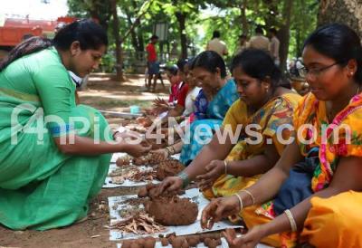 Photo Caption : Pushpa Amarnath, KPCC Women Wing President and members of KPCC Women Wing seen making Mud Seed Balls on the occasion of World Environment Day and birthday celebration of Rahul Gandhi, Congress President at Cubbon Park, organised by KPCC Women Wing and Forest Department, in Bengaluru on Wednesday 19th June 2019