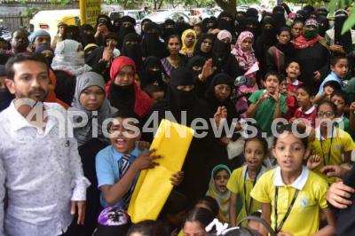 Photo Caption : Parents and Students of Government VKO School, Shivajinagar, involved in IMA Scam, staged a protest demanding for justice, in front of the residence of MLA R Roshan Baig at Spencer Road, near Coles park, in Bengaluru on Wednesday 19th June 2019