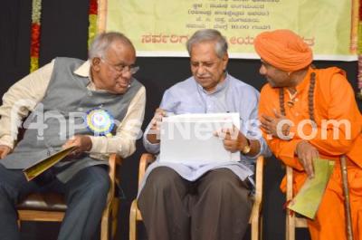Photo Caption : Dr Doddarangegowda with Chaitanya Swamiji and Former Minister PGR Sindhiya during inauguration of State level Kavigosti (Poet) at a program organised by Sri Janahith Charitable Trust at Kannada Sahitya Parishat, in Bengaluru on Sunday 23rd June 2019