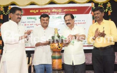 Photo Caption : Poet BR Lakshman Rao, Poet Satish Javaregowda, Dr Shivaraja Byadrahalli, Director, Kavya Kammata and CK Ramegowda, President, Kannada Janashakti Kendra at the inauguration of State level "Kavya Kammata" at Kannada Sahitya Parishat, in Bengaluru on Sunday 30th June 2019