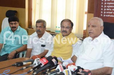 Photo Caption : BJP State President BS Yeddyurappa addressing press conference with BJP leaders Arvind Limbavali and Jeevaraj, in Bengaluru on Monday 1st July 2019