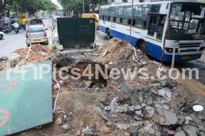 Photo Caption : Drainage work at 7th Block, Giri Nagar has been delayed and causing problems to the motorists, in Bengaluru on Tuesday 2nd July 2019
