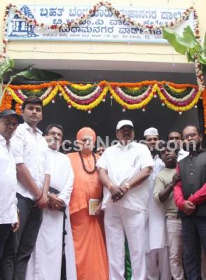 Photo Caption : Sri Shivarudra Swami of Belimutt with Councilor RV Yuvaraj, Former MLA RV Devaraj and others at the inauguration of BBMP office of Sudhama Nagara ward, in Bengaluru on Friday 5th July 2019