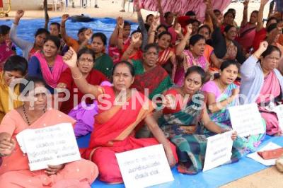 Members of State Anganwadi workers and helpers federation staging a protest at Freedom Park on the 2nd day, demanding to start LKG and UKG classes in Anganwadi center, in Bengaluru on Saturday 6th July 2019