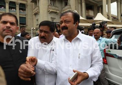 Photo Caption : JDS MLA Narayana Gowda seen leaving Vidhan Soudha towards Raj Bhavan to submit his resignation, in Bengaluru on Saturday 6th July 2019