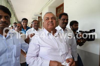 Photo Caption : Congress MLA Ramalinga Reddy seen leaving Vidhan Soudha towards Raj Bhavan to submit his resignation, in Bengaluru on Saturday 6th July 2019