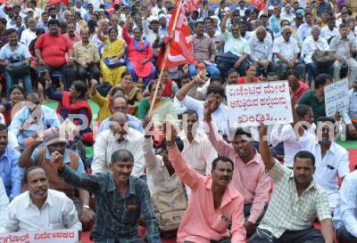 Members of Agri Customers and Agents Welfare Association staged a protest to fulfill their various demands at Freedom Park, in Bengaluru on Monday 8th July 2019