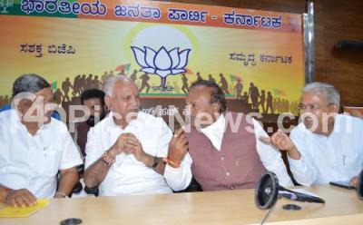 Karnataka State BJP Leaders BS Yeddyurappa, KS Eshwarappa, Jagdeesh Shettar and others seen at a meeting on current political situation in Karnataka, the meeting was held at BJP office, in Bengaluru on Tuesday 9th July 2019