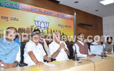 Photo Caption : Karnataka State BJP Leaders BS Yeddyurappa, KS Eshwarappa, Jagdeesh Shettar and others seen at a meeting on current political situation in Karnataka, the meeting was held at BJP office, in Bengaluru on Tuesday 9th July 2019