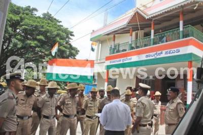 Event Description : Tight police security at KPCC office, following political developments in Karnataka State, in Bengaluru on Thursday 11th July 2019