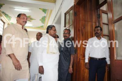 Photo Caption : Congress Legislative Party Leader Siddaramaiah and Congress Leaders arriving at the Speaker Chamber, following political developments in Karnataka State, in Bengaluru on Thursday 11th July 2019