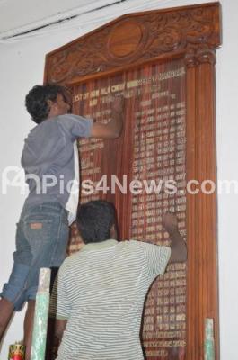 Photo Caption : Chief Ministers of Karnataka name board being cleaned at Vidhan Soudha, following political developments in Karnataka State, in Bengaluru on Thursday 11th July 2019