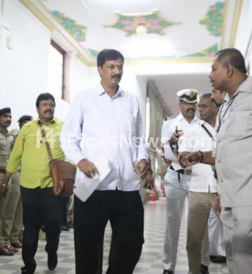 Photo Caption : Rebel MLA Ramesh Jarkiholi seen arriving to submit resignations, after the Supreme Court order, the rebel MLAs heavily protected by policemen, briskly walked to the speakers chamber at Vidhan Soudha, in Bengaluru on Thursday 11th July 2019