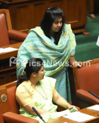 Photo Caption : Congress MLAs Sowmya Reddy and Dr Anjali Nimbalkar before Assembly Session at Vidhana Soudha, in Bengaluru on Monday 15th July 2019