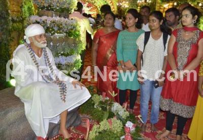 Photo Caption : Thousands of devotees visited Sri Sathya Ganapathi Shiradi Temple at JP Nagar and paid tribute to wax statue of Sai Baba, on the occasion of Guru Purnima, in Bengaluru on Tuesday 16th July 2019