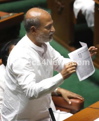 Photo Caption : Ministers Sa Ra Mahesh addressing during the 2nd day of Karnataka Assembly trust vote session at Vidhana Soudha, in Bengaluru on Friday 19th July 2019