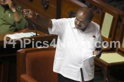 Photo Caption : Chief Minister of Karnataka HD Kumarswamy addressing during the 2nd day of Karnataka Assembly trust vote session at Vidhana Soudha, in Bengaluru on Friday 19th July 2019