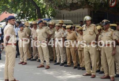 Event Description : Tight police security at BJP Office at Malleshwaram, in Bengaluru on Wednesday 24th July 2019