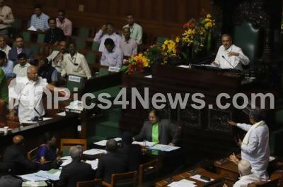 Photo Caption : Former CM Siddaramaiah seen arguing with CM BS Yediyurappa during the Assembly Session at Vidhan Soudha, in Bengaluru on Wednesday 31st July 2019