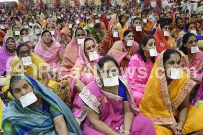 Photo Caption : Devotees during Fasting for World Peace program to mark 120th birth anniversary of Acharya Poojya Shri Anand Rishiji at Palace Grounds, in Bengaluru on Thursday 1st August 2019