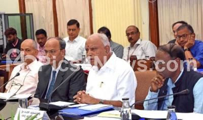 Photo Caption : CM BS Yediyurappa with Chief Secretary TM Vijaya Bhaskar and others during meeting with Regional Commissioner , DCs and Zilla Panchayat CEOs at Conference Hall, Vidhana Soudha, in Bengaluru on Friday 2nd August 2019