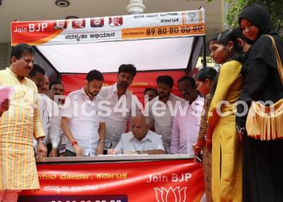 Event Description : CM BS Yediyurappa, Sapthagiri Gowda, president Bangalore City Yuva Morcha with members of BJP Yuva Mrcha inaugurated the BJP Membership Campaign at BJP Office, Malleshwaram, in Bengaluru on Saturday 3rd August 2019