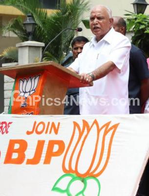 Photo Caption : CM BS Yediyurappa addressing during the inauguration of the BJP Membership Campaign at BJP Office, Malleshwaram, in Bengaluru on Saturday 3rd August 2019