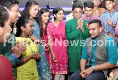 Photo Caption : Yaduveer Krishnadatta Chamaraj Wadiyar interacting with students during "Medha Samskrit Camp" at Aksharam Auditorium, Girinagar, in Bengaluru on Sunday 4th August 2019