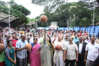 MLA Ramalinga Reddy along with MLA soumya reddy, Mayor Gangambika Mallikarjuna, Deputy Mayor Bhadregowda, BBMP Commissioner Manjunath Prasad and BBMP members inaugurated the Mayor Cup Basketball tournament at KR Park, Basavanagudi, in Bengaluru on Wednesday 7th August 2019