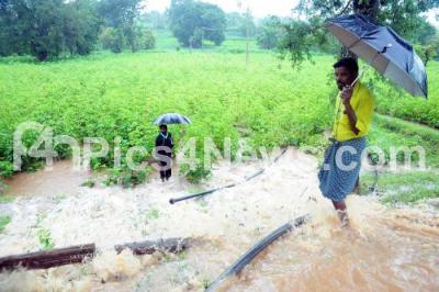 Photo Caption : Heavy rains disrupts life in HD Kote, Mysuru District, as many roads, bridges and farming fields were flooded due to incessant rains in HD Kote on Thursday 8th August 2019