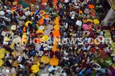Photo Caption : People seen shopping on the eve of Varamahalakshmi pooja festival at KR Market, in Bengaluru on Thursday 8th August 2019