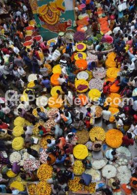 People seen shopping on the eve of Varamahalakshmi pooja festival at KR Market, in Bengaluru on Thursday 8th August 2019