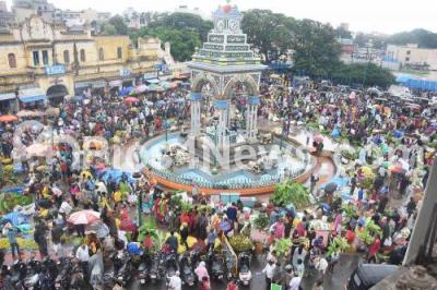 Photo Caption : People seen shopping on the eve of Varamahalakshmi pooja festival at a Market, in Mysuru on Thursday 8th August 2019