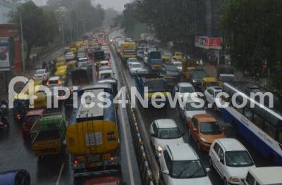 Photo Caption : Traffic jam at Kasturba Road as rains lashed Bengaluru City on Thursday 8th August 2019