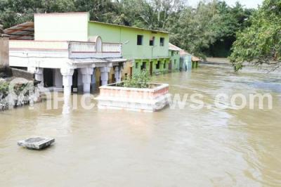 Photo Caption : People living in low lying areas along the Cauvery, downstream of Krishnaraja Sagar (KRS) reservoir near Srirangapatna in Mandya district, have been asked to move to safer areas as the quantum of discharge from the reservoir is on the rise, the KRS water level is moving towards the full reservoir level due to heavy rains and floods in the catchment areas near Srirangapatna in Mandya district on Sunday 11th August 2019