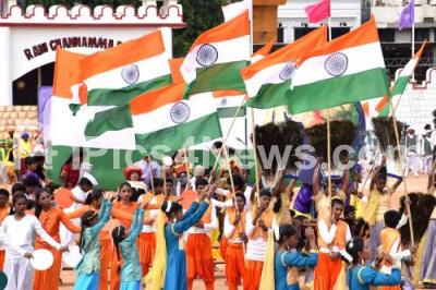 Photo Caption : Students perform cultural dance during the celebrations of 73rd Independence Day at Manekshaw Parade Grounds, in Bengaluru on Thursday 15th August 2019
