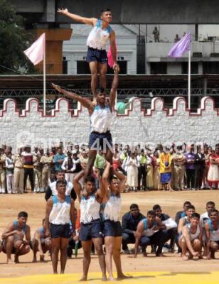 Photo Caption : - Indian Army personnel perform gymnastics during the celebrations of 73rd Independence Day at Manekshaw Parade Grounds, in Bengaluru on Thursday 15th August 2019
