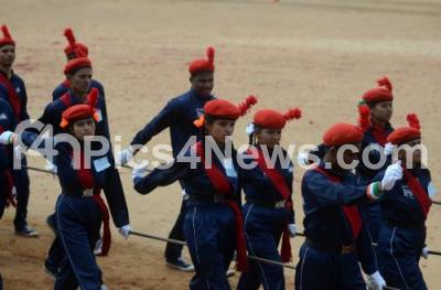 Photo Caption : Indian blind school children take part in the march past during celebrations of 73rd Independence Day at Manekshaw Parade Grounds, in Bengaluru on Thursday 15th August 2019