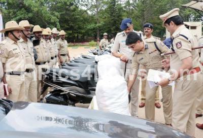 Photo Caption : Police Commissioner Bhaskar Rao and police officials inspect the recovered vehicles during property parade at Koramangala Police Station Limits, in Bengaluru on Monday 19th August 2019