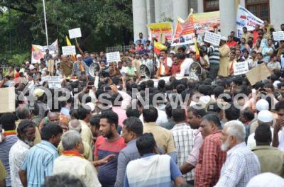 Event Description : Members of Jolly Mohalla Tempo Stand Association staged a protest to fulfill their various demands at Town Hall, in Bengaluru on Tuesday 20th August 2019